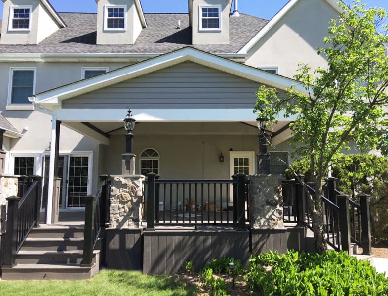 A roof structure (patio roof, covered patio, roofed deck) offers the perfect blend of beauty, comfort, and function. It lets you enjoy your outdoor living space in sun or rain, increases property value, and elevates your home’s curb appeal.